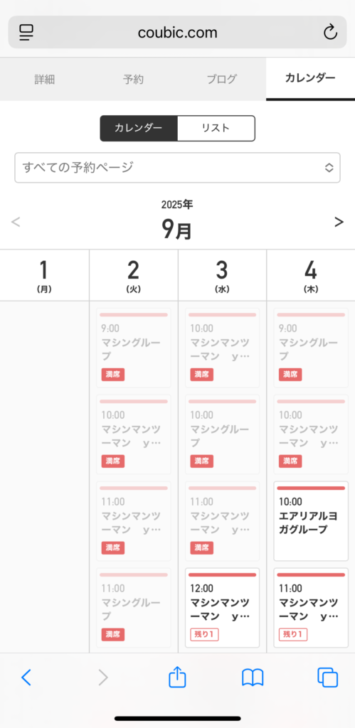スケジュールから予約したい方は、カレンダーから予約がオススメ!